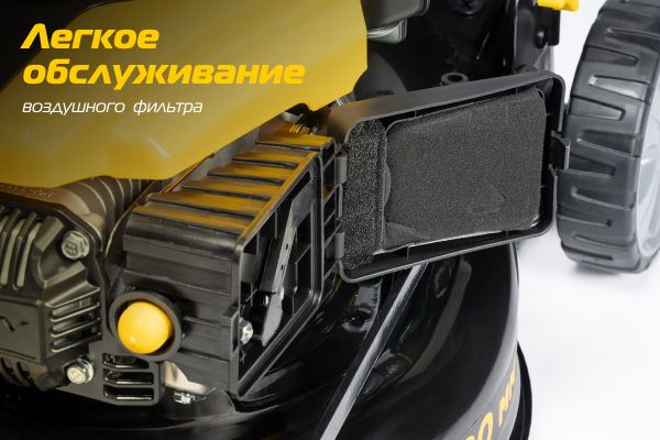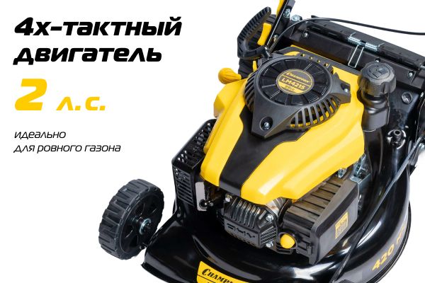 4х-тактный двигатель мощностью 2 л.с. делает эту модель оптимальным вариантом для небольших участков с ровным рельефом.