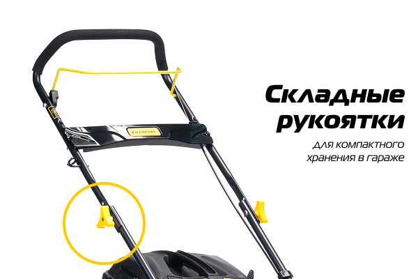 Складные рукоятки упрощают хранение и транспортировку агрегата.