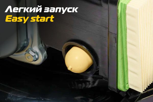 Благодаря наличию праймера запуск двигателя происходит быстро и без усилий даже в холодное время года, так как устройство принудительно подает дополнительный бензин для обогащения топливной смеси.