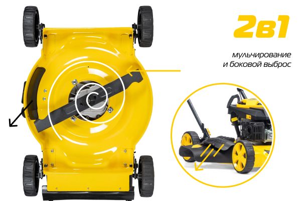 2 режима работы: мульчирование и боковой выброс.