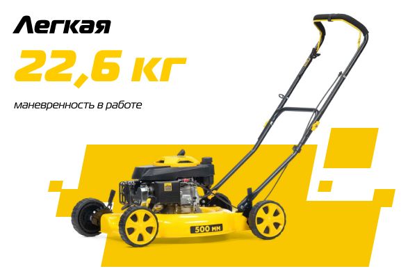 Большая ширина скашивания 500 мм позволяет быстро обрабатывать необходимую территорию.