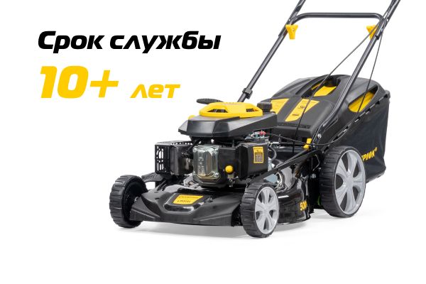 Большая ширина скашивания 500 мм позволяет быстро обработать участок до 10 соток.