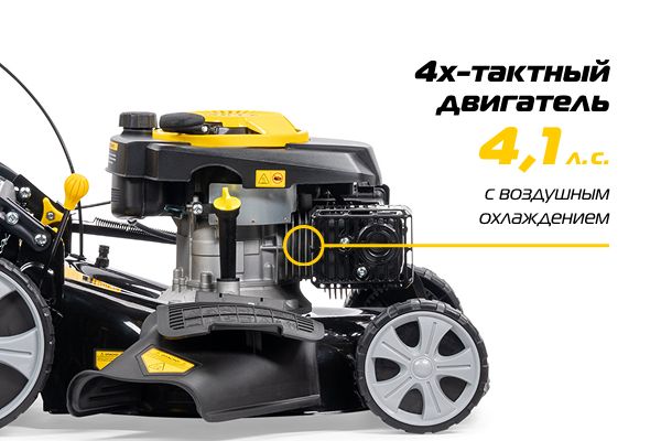 4х-тактный двигатель с воздушным охлаждением и мощностью 4,1 л.с. отличается надежностью и производительностью.