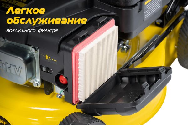 Воздушный фильтр Champion легко обслуживать: крышка снимается руками, без использования инструментов. При этом бумажный фильтр обеспечивает максимальную защиту двигателя от пыли и сохраняет мощность даже в сложных условиях.