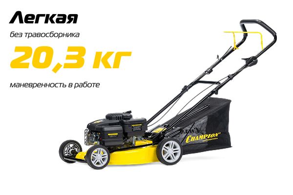 Относительно легкая газонокосилка весом 20,3 кг отличается маневренностью в работе.