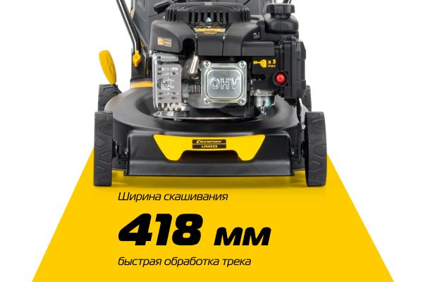 Эта легкая и компактная модель Champion LM4222 рекомендуется для бытового использования на даче и участке загородного дома в 5-6 соток.