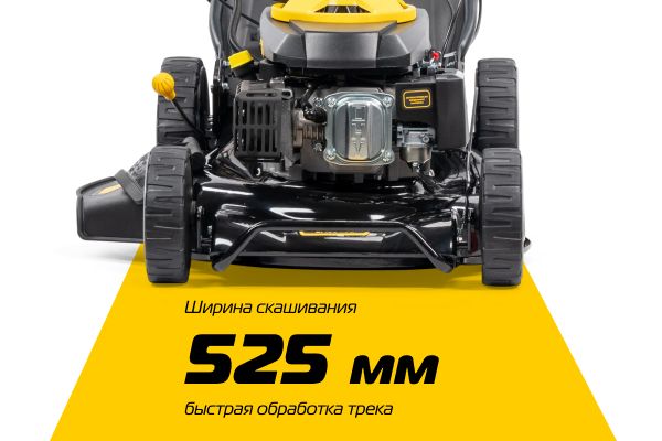 Благодаря ширине скашивания 525 мм газонокосилка быстро справляется с большими участками.