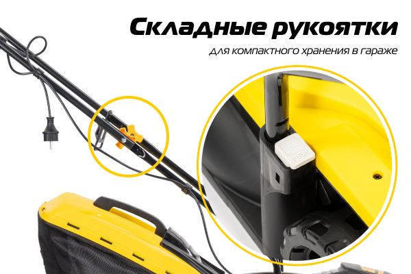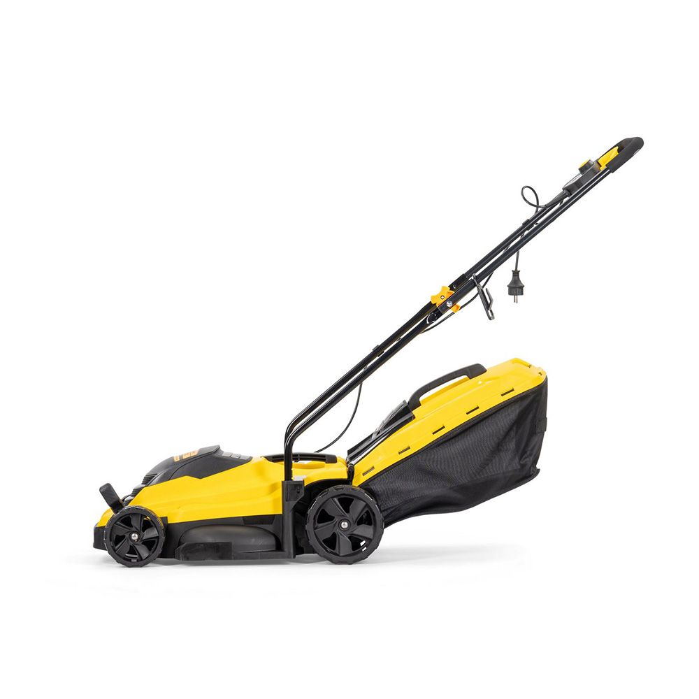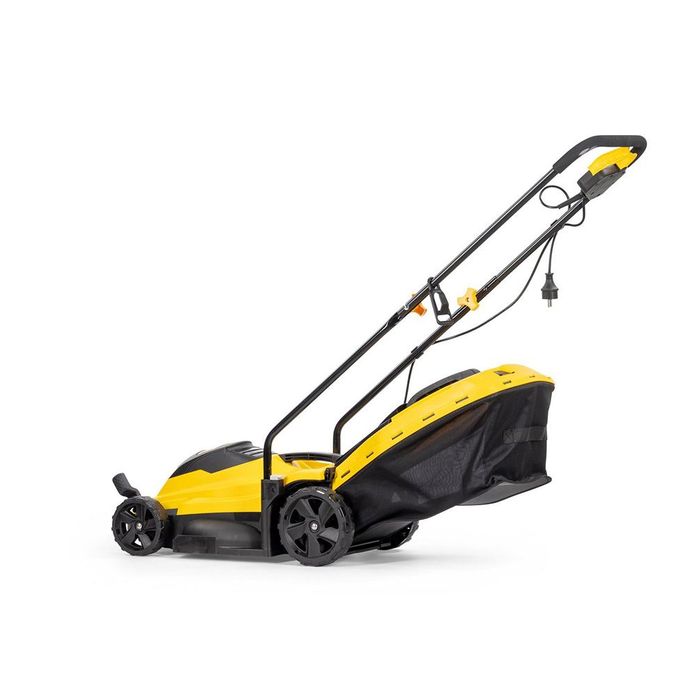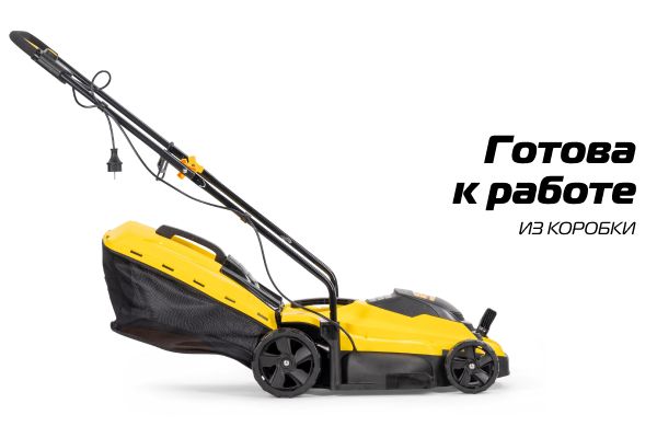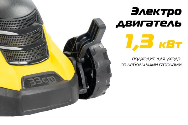 Газонокосилка мощностью 1300 Вт подходит для ухода за небольшими газонами, для кошения травы на ровных лужайках.