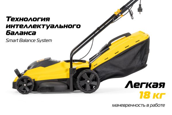 Технология интеллектуального баланса (Smart Balance System) со специальным грузом в передней части корпуса обеспечивает идеальную балансировку и оптимальное распределение массы, обеспечивая высокую манёвренность при общем весе устройства вместе с травосборником всего 6,8 кг.