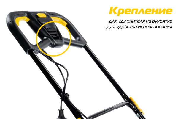 Для удобства использования на рукоятке газонокосилки есть крепление для удлинителя.