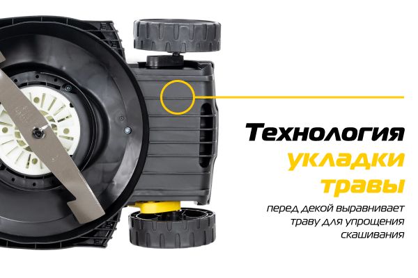 Перед декой есть специальная расческа, которая выравнивает и раскладывает траву для упрощения процесса скашивания.
