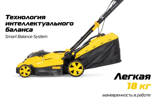 Технология интеллектуального баланса (Smart Balance System) со специальным грузом в передней части корпуса обеспечивает идеальную балансировку и оптимальное распределение массы, обеспечивая высокую манёвренность при общем весе устройства вместе с травосборником всего 8,8 кг.