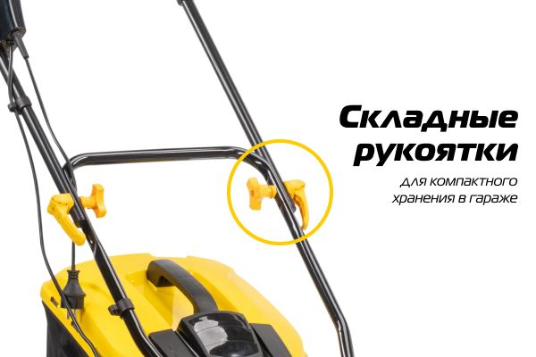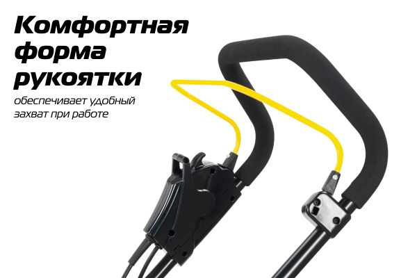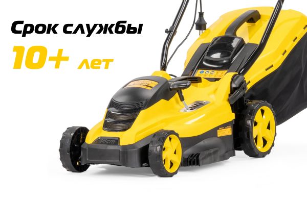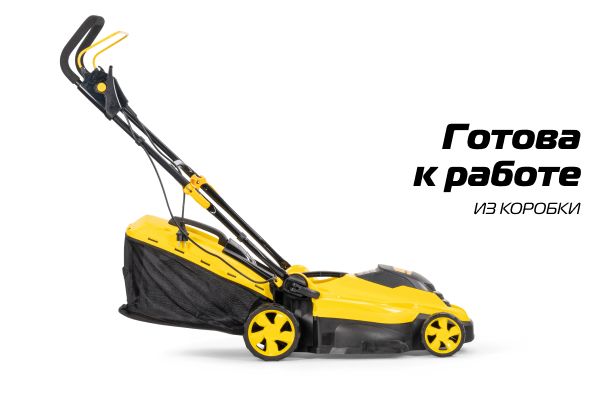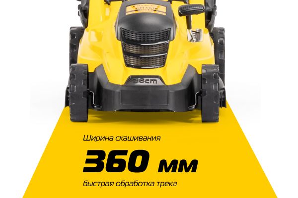 Имеет ширину скашивания 360 мм, что оптимально для дачного участка площадью 10 соток.