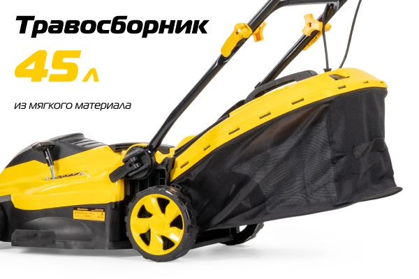 Вместительный травосборник объемом 45 литров позволяет реже прерывать работу для его очистки.