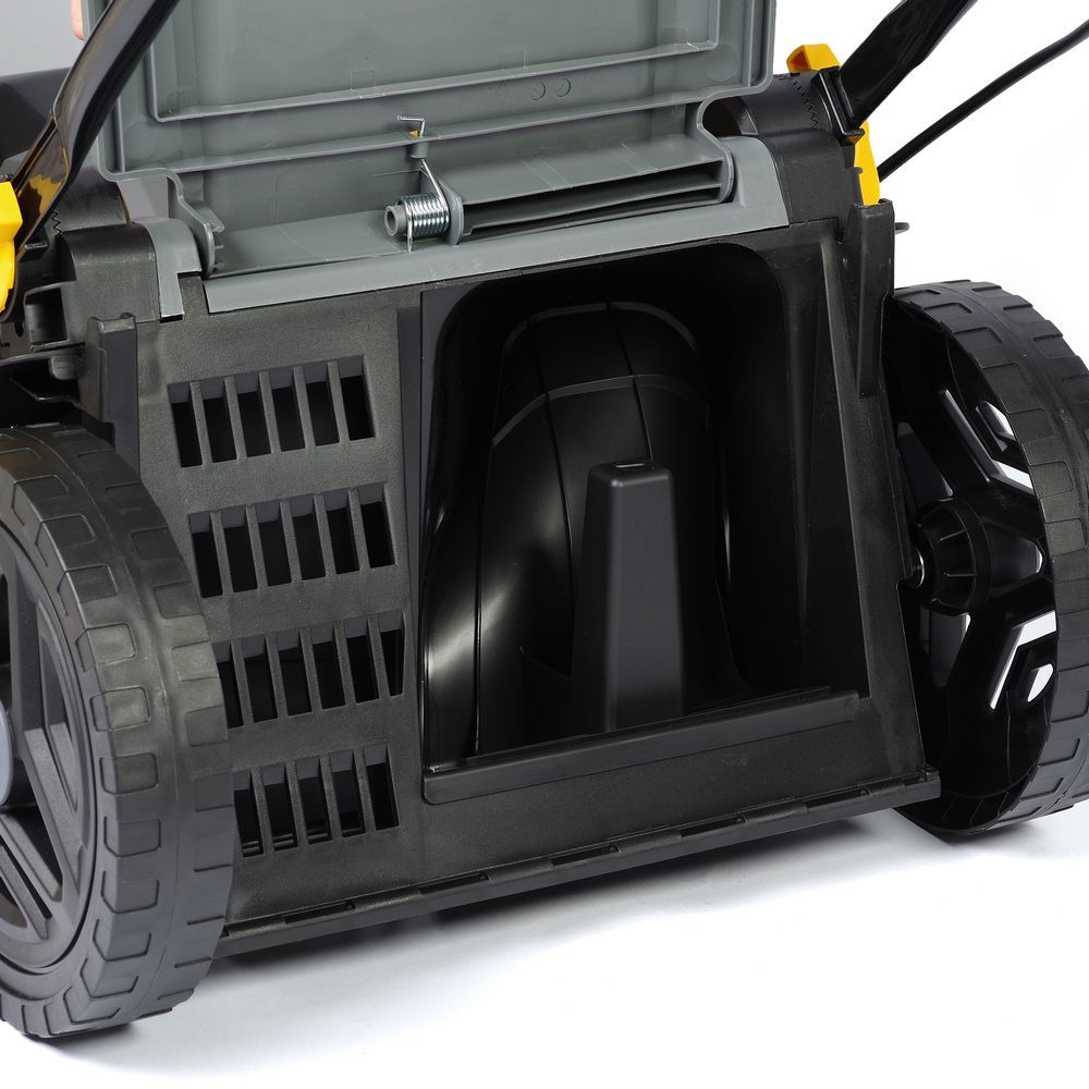 Вместительный травосборник объемом 52 литра позволяет реже отвлекаться на его опустошение.