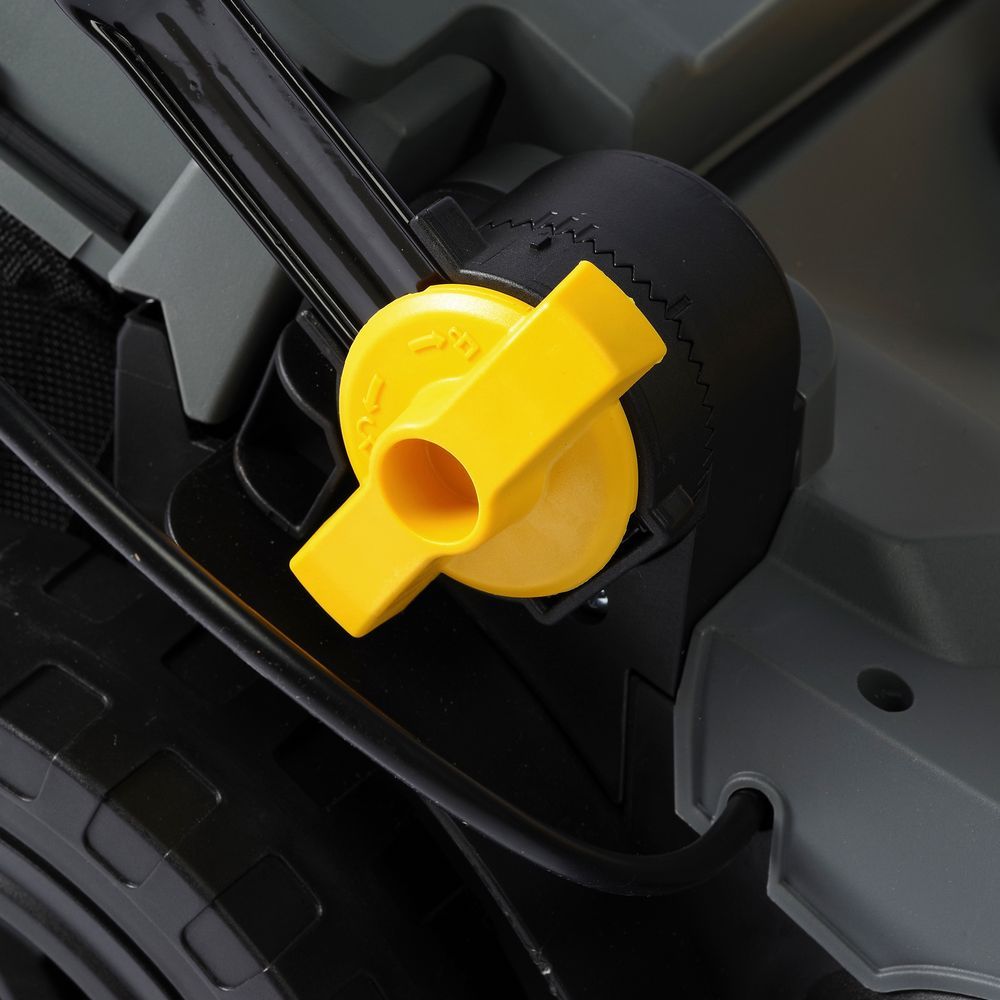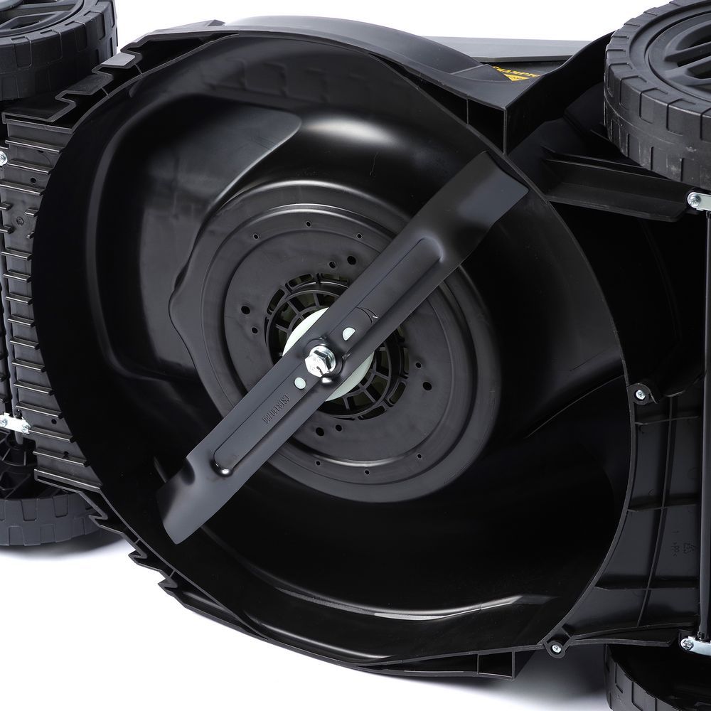 Регулировка высоты среза рукояткой позволяет настроить необходимую высоту скашивания одним движением. В данной модели предусмотрено 5 ступеней от 30 до 75 мм.