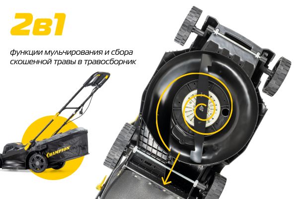 Помимо вместительного травосборника у этой модели есть функция мульчирования