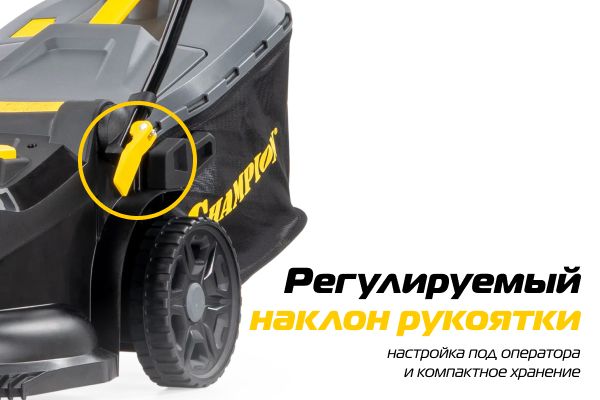 Наклон рукоятки газонокосилки регулируется под пользователя.