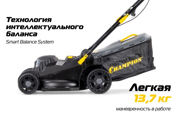 Технология интеллектуального баланса (Smart Balance System) со специальным грузом в передней части корпуса обеспечивает идеальную балансировку и оптимальное распределение массы, обеспечивая высокую манёвренность при общем весе устройства вместе с травосборником всего 13,7 кг.