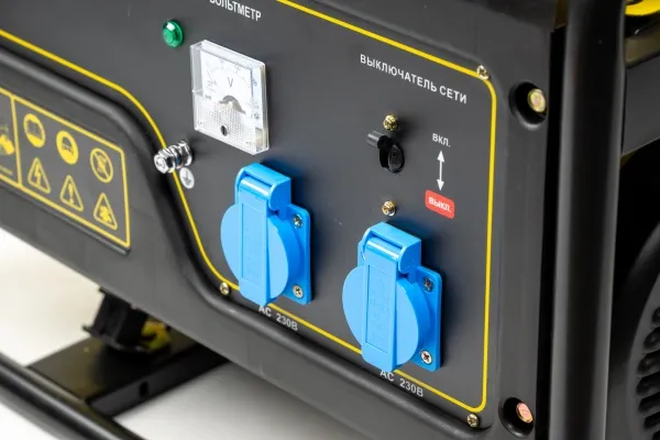 Номинальная мощность двигателя 2,3 кВт. Этого достаточно для одновременного подключения небольших бытовых (микроволновка, чайник, вентилятор и т.п.) и строительных приборов.
