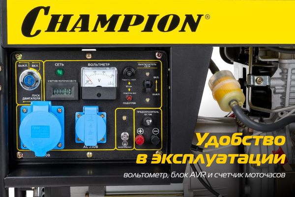 Счетчик моточасов позволяет определить состояние устройства и прогнозировать необходимость техобслуживания. Блок AVR автоматически стабилизирует напряжение и минимизирует колебания параметров тока. Вольтметр позволяет мониторить напряжение в цепи для предотвращения повреждений оборудования.