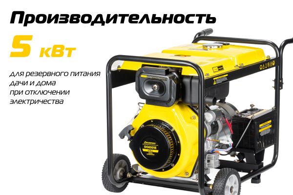 Номинальная мощность генератора 5 кВт. Может одновременно запитать несколько необходимых бытовых приборов при отключении центральной сети, например, чайник, холодильник, микроволновая печь, обогреватель и т.д. Подходит для резервного питания дачи и дома при отключении электричества.