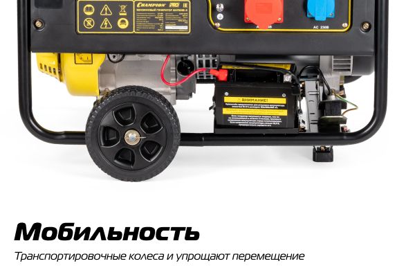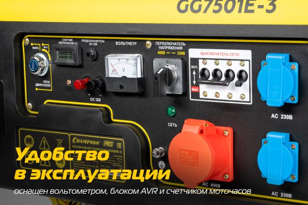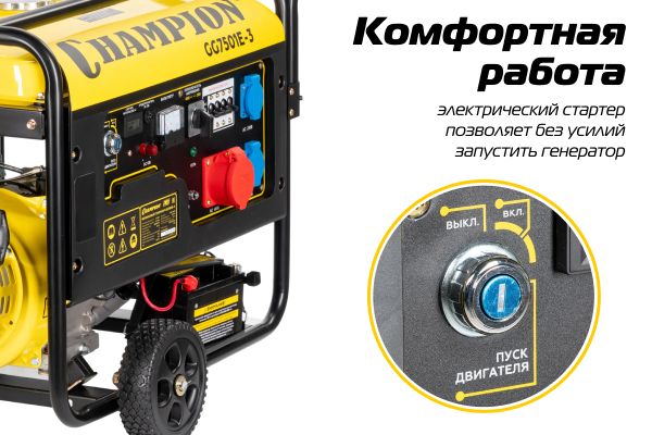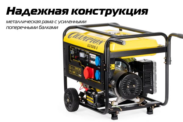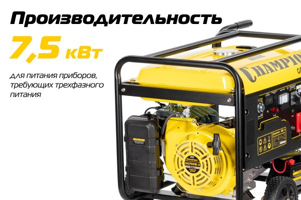 Бензиновый генератор Champion GG7501E-3, оснащенный электростартером, предназначен для подключения оборудования, требующего трехфазного питания: на произ...