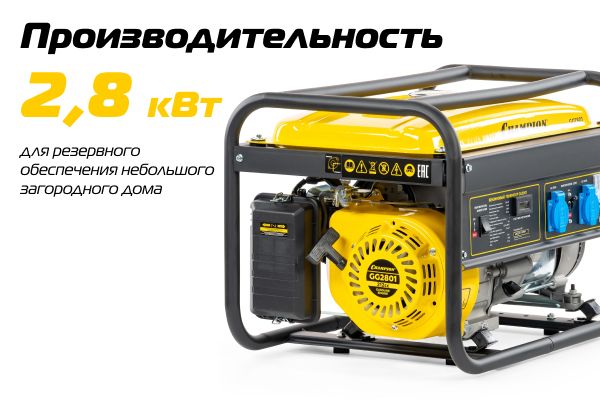 Бензиновый генератор Champion GG2801 рекомендован как резервный источник электроэнергии в частных домах и на дачах, во время проведения мероприятий на от...