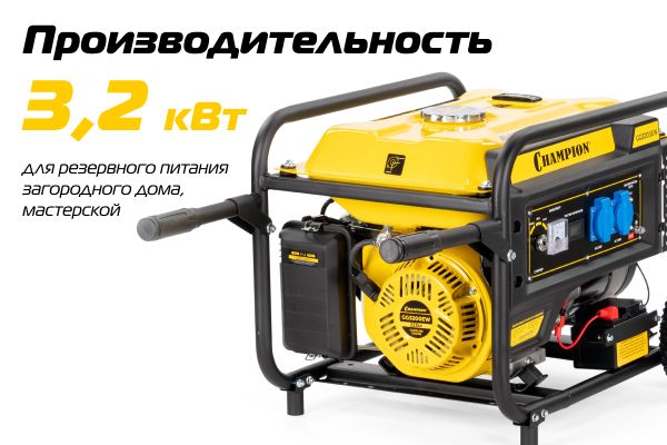Генератор Champion GG3200EW подойдет для использования в качестве резервного источника электроэнергии в частных домах, на дачах, при проведении активных ...