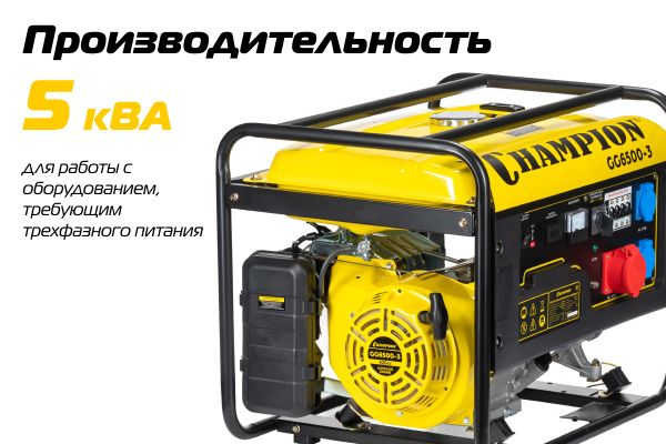 Трехфазный бензиновый генератор GG6500-3 рекомендован для использования как автономный источник электропитания на строительных площадках, в автомастерски...
