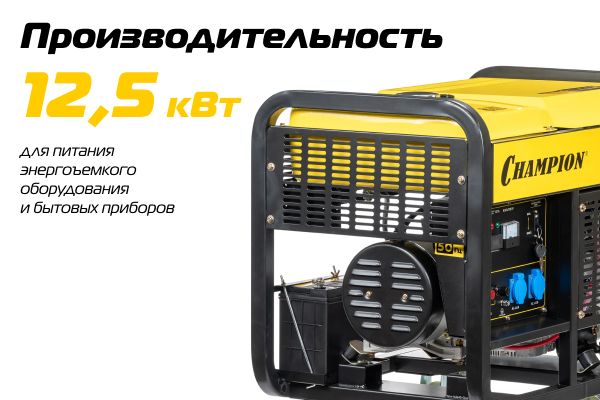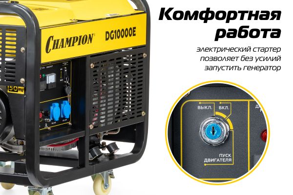 Дизельный генератор Champion DG10000E рекомендован для аварийного и постоянного электроснабжения дома, строительных площадок, мастерских и коммерческих о...