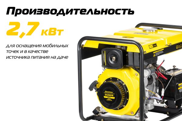 Дизельный генератор Champion DG3601E подходит для широкого спектра задач, требующих длительной работы.