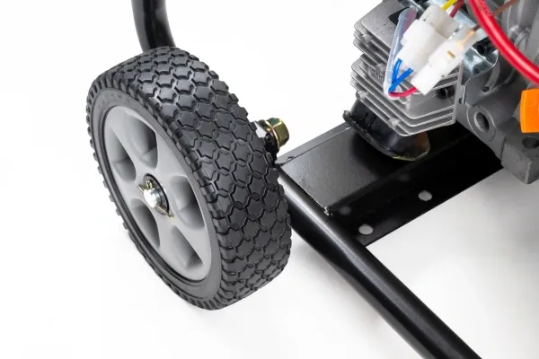 Поскольку генератор крупногабаритный (99 кг), в комплект входят транспортировочные колеса для удобства перемещения.