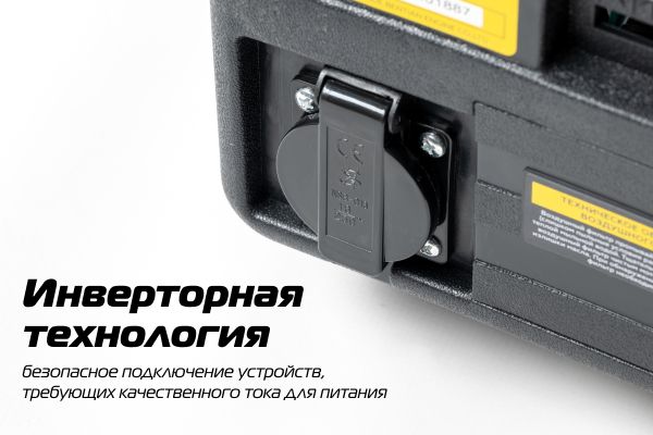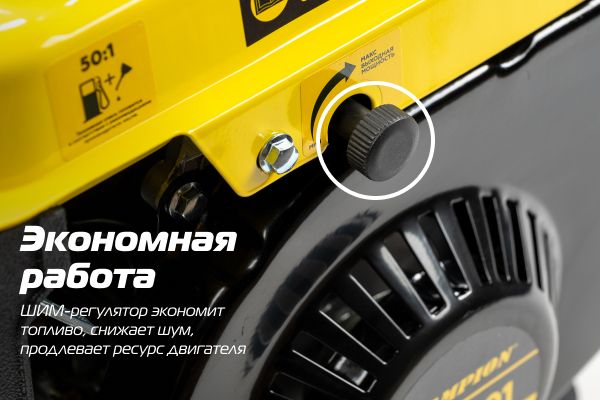 ШИМ-регулятор выходной мощности позволяет экономить топливо, снижает уровень шума, увеличивает ресурс двигателя, обеспечивает стабильное и постоянное выходное напряжение. Можно регулировать выходную мощность генератора до 1 кВт, поворачивая винт регулировки мощности.