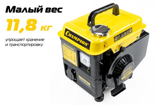 Двухтактный инверторный генератор Champion IGG1001 благодаря своим небольшим габаритам оптимально подойдет для кемпинга и туризма.