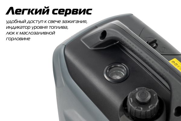Обслуживание генератора упрощено за счёт удобного доступа к свече зажигания и встроенного индикатора уровня топлива.
