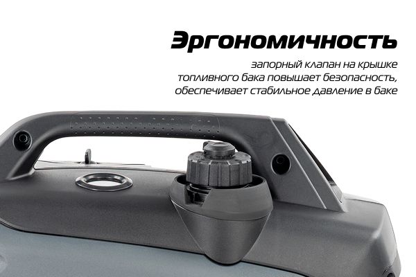 Запорный клапан вентиляции на крышке топливного бака предотвращает испарение топлива, повышает безопасность (блокируя выход горючих паров), обеспечивает стабильное давление в баке и делает транспортировку генератора более безопасной.