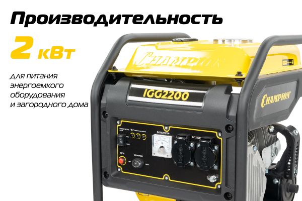 Инверторный генератор Champion IGG2200 рекомендован как резервный источник питания на даче и в загородном доме, а также для кемпинга.