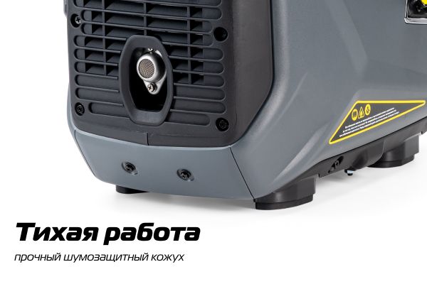 Прочный шумозащитный кожух позволяет значительно снизить уровень выдаваемого генератором шума.