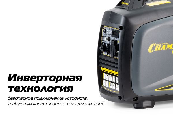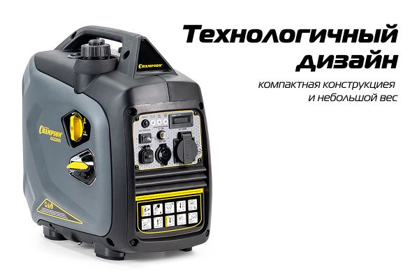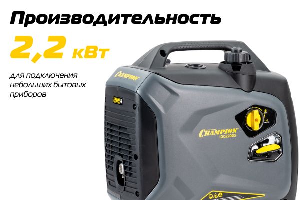 Инверторный генератор Champion IGG2200S рекомендован как резервный источник питания на даче и при решении небольших задач. За счет компактности, легкого веса и низкого уровня шума станет отличным решением при выездах на природу.