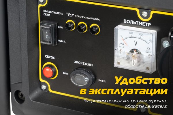 Генератор поставляется в состоянии полной заводской готовности: полностью собран и настроен, поэтому для начала работы достаточно залить топливо и масло — без какого-либо дополнительного монтажа или регулировок.