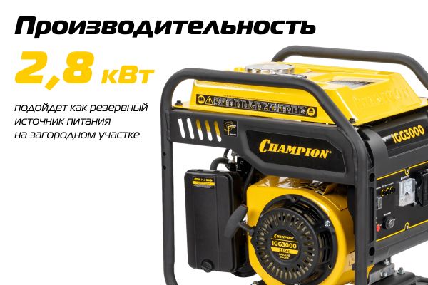Инверторный генератор Champion IGG3000 оптимально подойдет для использования как резервный источник питания на даче.