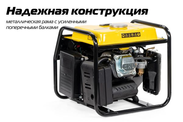Генератор поставляется в состоянии полной заводской готовности: полностью собран и настроен, поэтому для начала работы достаточно залить топливо и масло — без какого-либо дополнительного монтажа или регулировок.