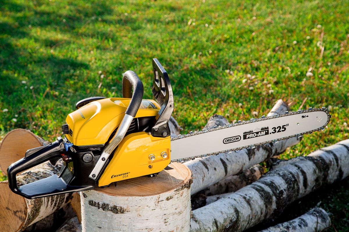 Оснащена инерционным тормозом и металлическим цепеуловителем, которые защищают от травм из-за отскока шины или обрыва цепи.