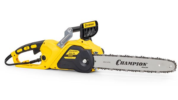 Электрическая пила Champion 620-16 подходит для валки маленьких деревьев, заготовки дров, распиловки досок и обрезки веток.