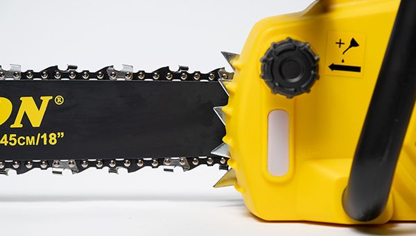Металлический зубчатый упор фиксирует агрегат у основания шины относительно бревна и препятствует срыву полотна из пропила, тем самым улучшает контроль над процессом пиления.