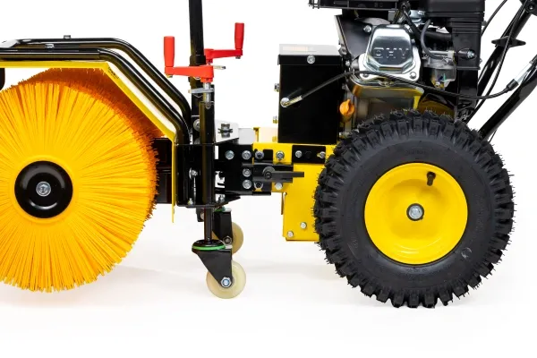 Регулировка высоты подъема щетки позволяет подстроить машину под любую высоту покрытия. Ширина щетки 620 мм оптимально подходит для уборки территорий с препятствиями и ограниченных пространств.