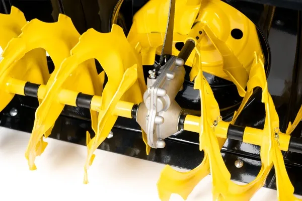 Стальные зубцы шнека специальной заострённой формы способны осилить самые плотные снежные пласты и ледяную корку, гарантируя мгновенное измельчение и бесперебойную подачу снега на крыльчатку для мощного выброса снега.