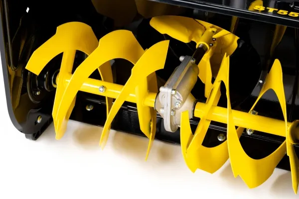 Стальные зубцы шнека специальной заострённой формы способны осилить самые плотные снежные пласты и ледяную корку, гарантируя мгновенное измельчение и бесперебойную подачу снега на крыльчатку для мощного выброса снега.
