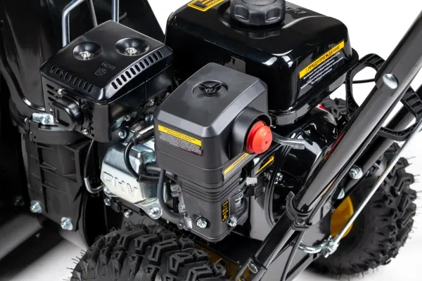 Мощный двигатель 5.5 л.с.: усиленный корпус картера с дополнительными ребрами жесткости, усиленная конструкция шатуна, а в конструкции клапанов используется сталь с содержанием хрома 10% для впускного клапана и 21% для выпускного клапана. Ширина захвата 530 мм оптимальна для уборки снега на загородном участке.